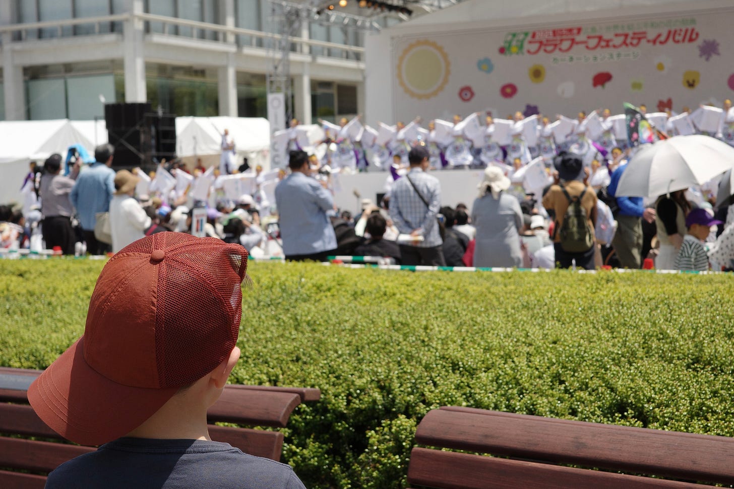 Shy boy. Twee keer eerder deze reis was mijn jongste het wél, toen groepjes meisjes naar hem wezen en lachten omdat ze hem zo schattig vonden. Daarvan begroef hij zijn gezicht in mijn oksel en dat is begrijpelijk.