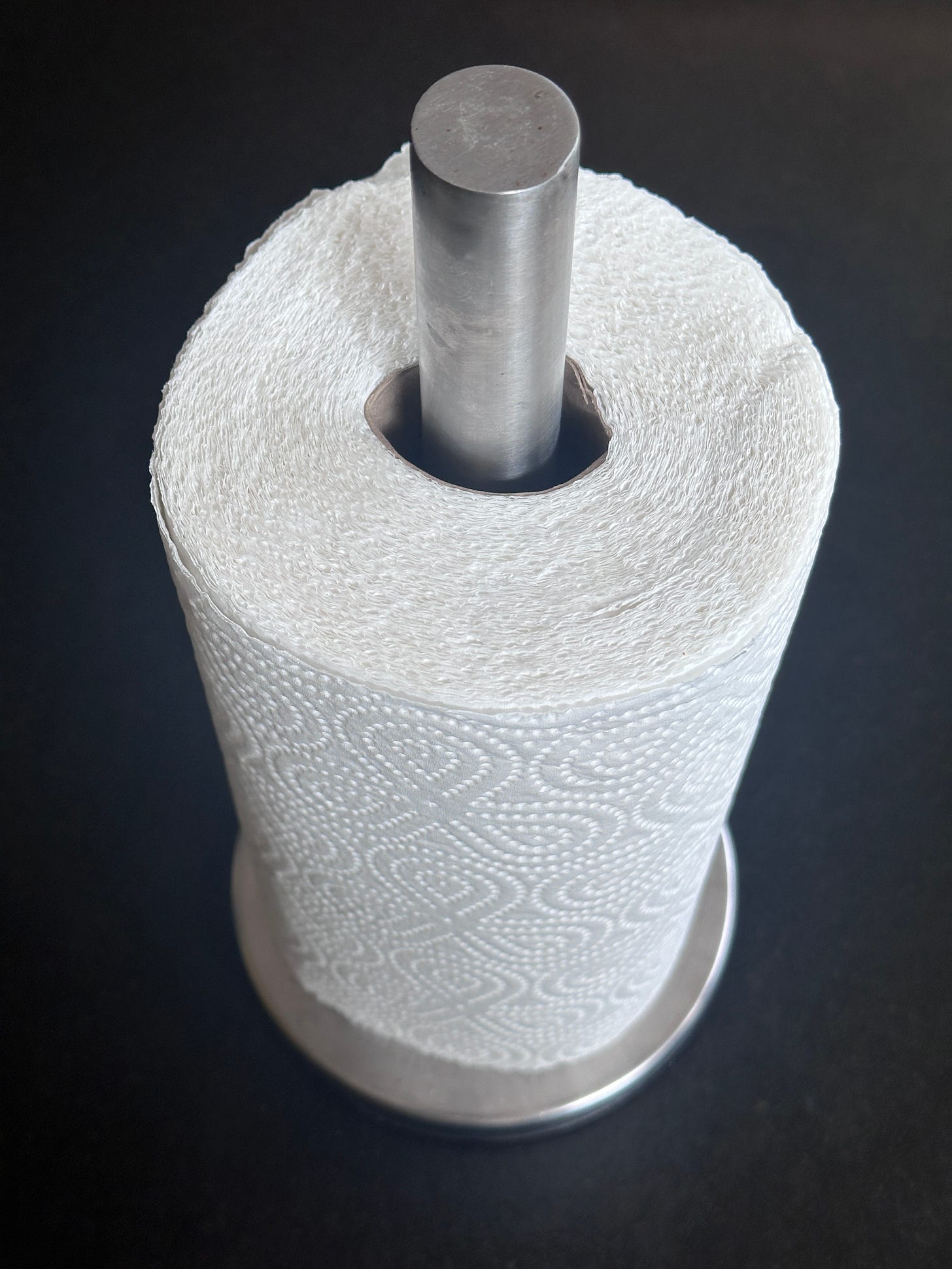 De keukenrolhouder is een jaar of tien oud, schat ik, want dat soort data heb ik niet scherp. Er zijn in het volwassen leven zoveel andere data om scherp te houden dat de leeftijd van iets als een keukenrolhouder erbij in kan schieten. Misschien gaat het ook niet om de leeftijd, maar om het materiaal en ontwerp van de keukenrolhouder. Het is een goedkoop ding, dat weet ik wel, en geen toonbeeld van vakmanschap. De steel zit lossig in de voet, ongeacht hoe hard je het schroefje aan de onderkant vastdraait. Dat ik zulks heb geprobeerd geeft aan dat ik ook goedkope, lelijke dingen liefde en aandacht kan geven. Juist dat geeft ze waarde.